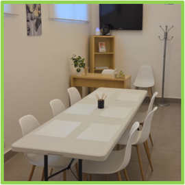 Uno spazio versatile progettato per colloqui individuali o lezioni private. La configurazione include una postazione principale ergonomica, sedute per gli ospiti e l'accesso a una sala d'attesa dedicata. Il comfort è garantito dalla nostra break area e dai servizi privati, per un'accoglienza impeccabile. Possibilità previa richiesta di gestione appuntamenti.